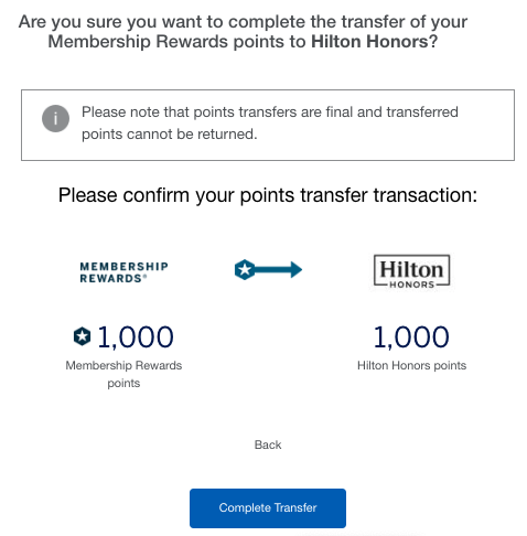 Of course, bear in mind that once you transfer your MR points, you can’t transfer them back, so you’ll want to be 100% sure it’s something that you want to do.