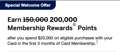 Right now, the Business Platinum Card® from American Express is once again offering a staggering 200,000 Membership Rewards points upon spending $20,000 in the first three months as a cardholder.†