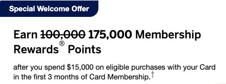 Meanwhile, the American Express® Business Gold Card is offering new applicants up to 175,000 MR points,† which is excellent relative to the card’s $375 annual fee.
