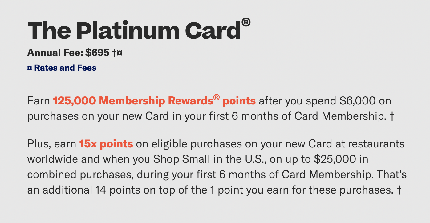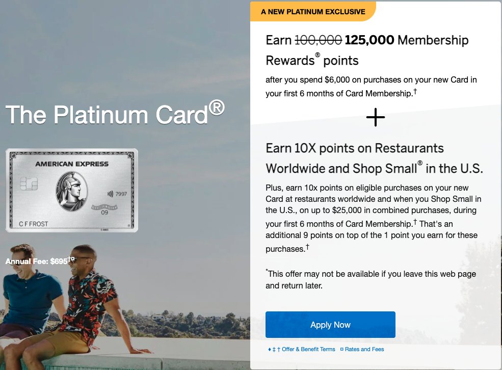 Amex US Platinum Card: 125,000+ Points, Higher $695 Annual Fee