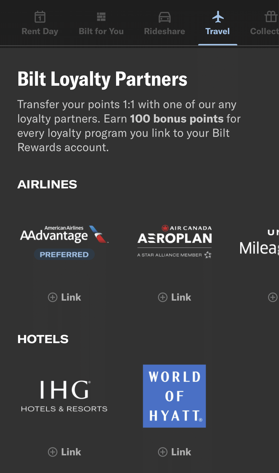 Once you’ve enrolled in both programs, you’ll then need to link your accounts on the Bilt app under the “Travel” tab.