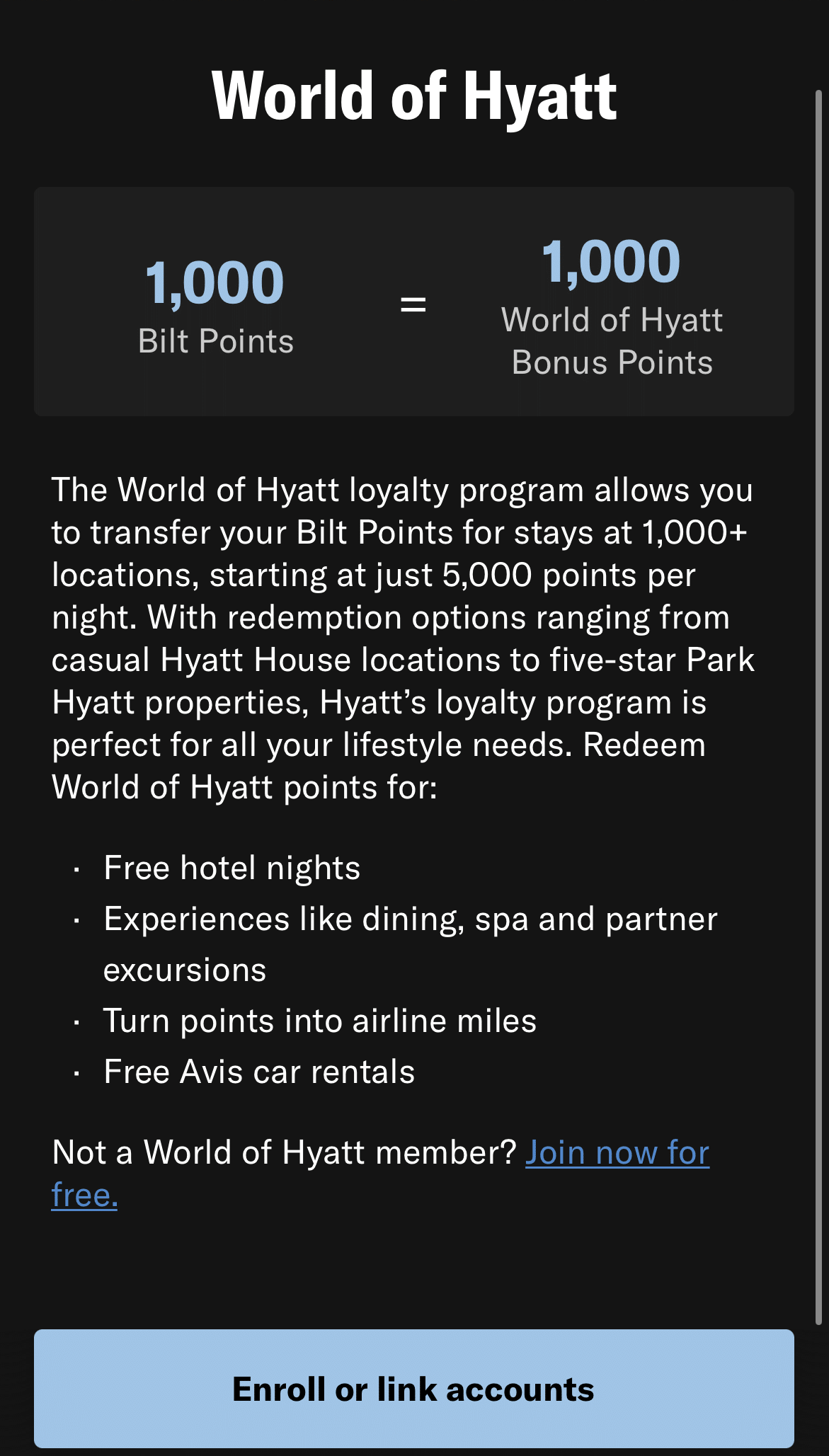 First of all, you’ll need to be a member of both World of Hyatt and Bilt Rewards to participate.