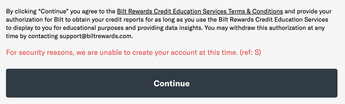 If you go to make a Bilt account from outside the US, you’ll likely run into an error during the account creation process.