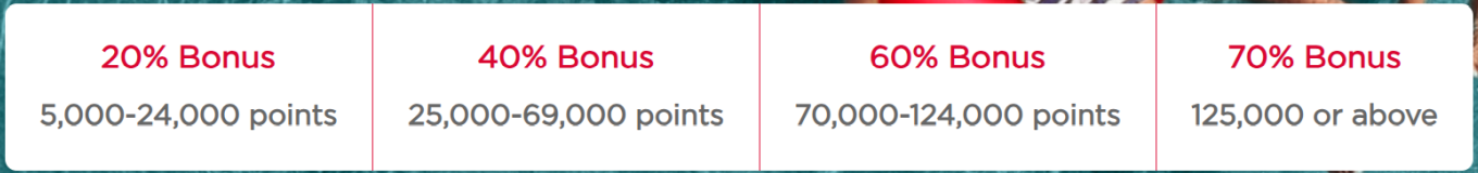 - Buy 70,000–124,000 points, get a 60% bonus