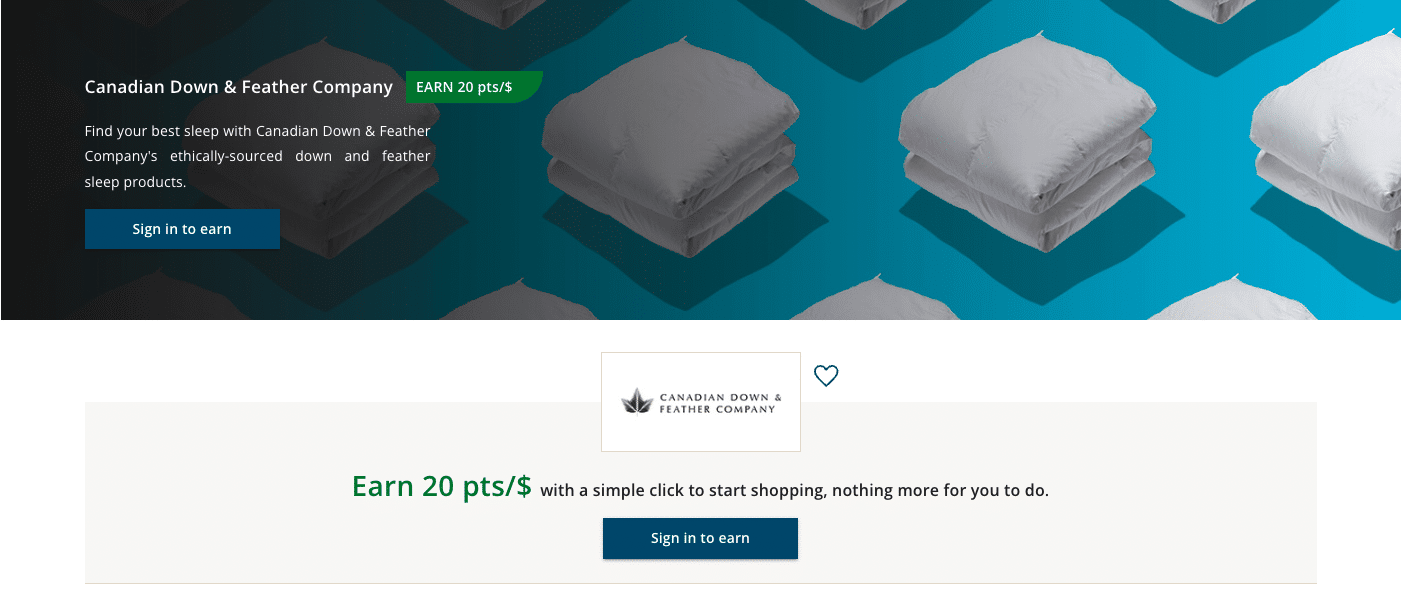 In fact, the Canadian Down & Feather Company was the first Aeroplan eStore vendor to offer a 20x event!