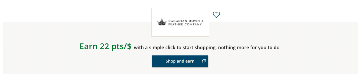 - Earn 20 Aeroplan points per dollar spent on Canadian Down & Feather Company products purchased through the Aeroplan eStore