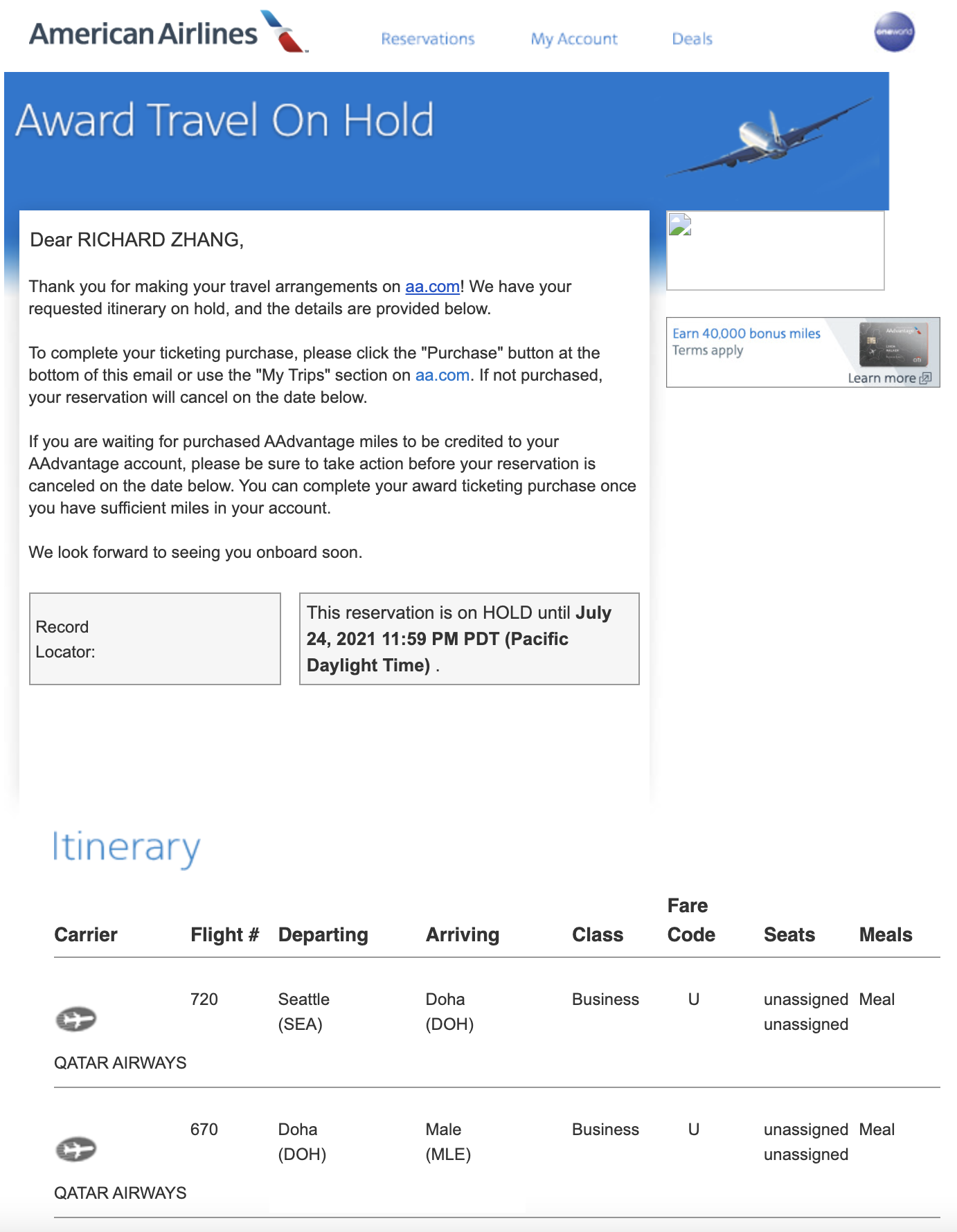 (I’ve personally just put a Seattle–Doha–Maldives award on hold for next year, and I’m delighted to be able to lock in this journey for only 70,000 AAdvantage miles one-way.)