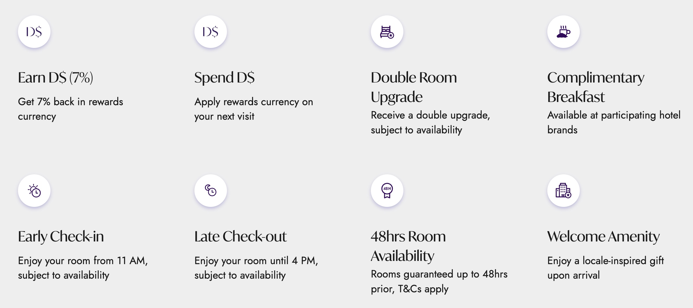 The real value kicks in at the Titanium level, which offers double room upgrades, late check-out, and complimentary breakfast at select brands like Avani, Capella, Pan Pacific, and PARKROYAL.