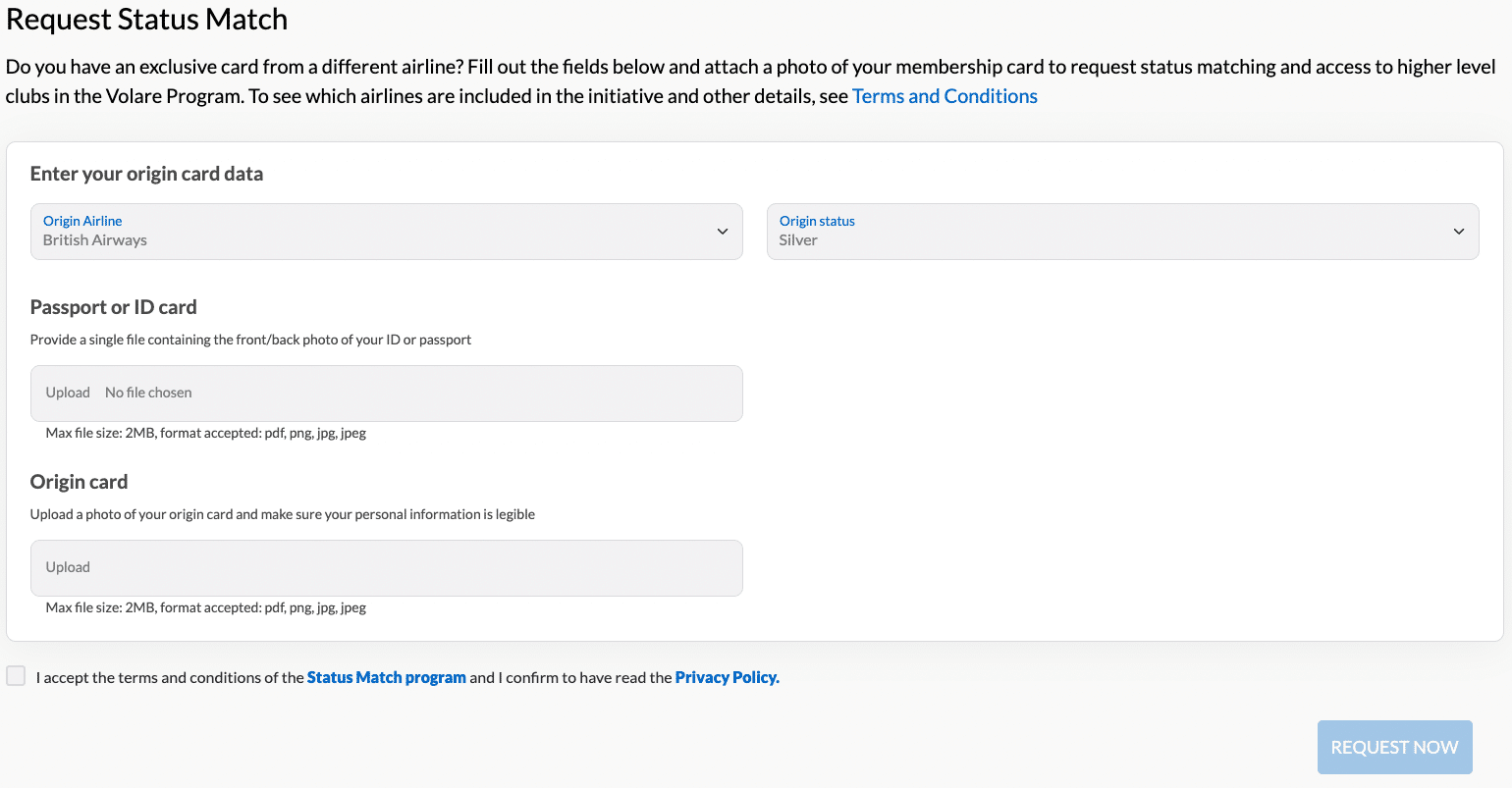 If this new status match offer has caught your attention and you plan on registering, your request can only be submitted through the dedicated “Request status match” section within your Volare personal dashboard.