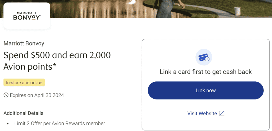 There should be a “Spend $500, earn 2,000 Avion points” offer available on your dashboard, which must be loaded by April 30, 2024. Then, you can earn bonus Avion points on stays through to May 31, 2024.