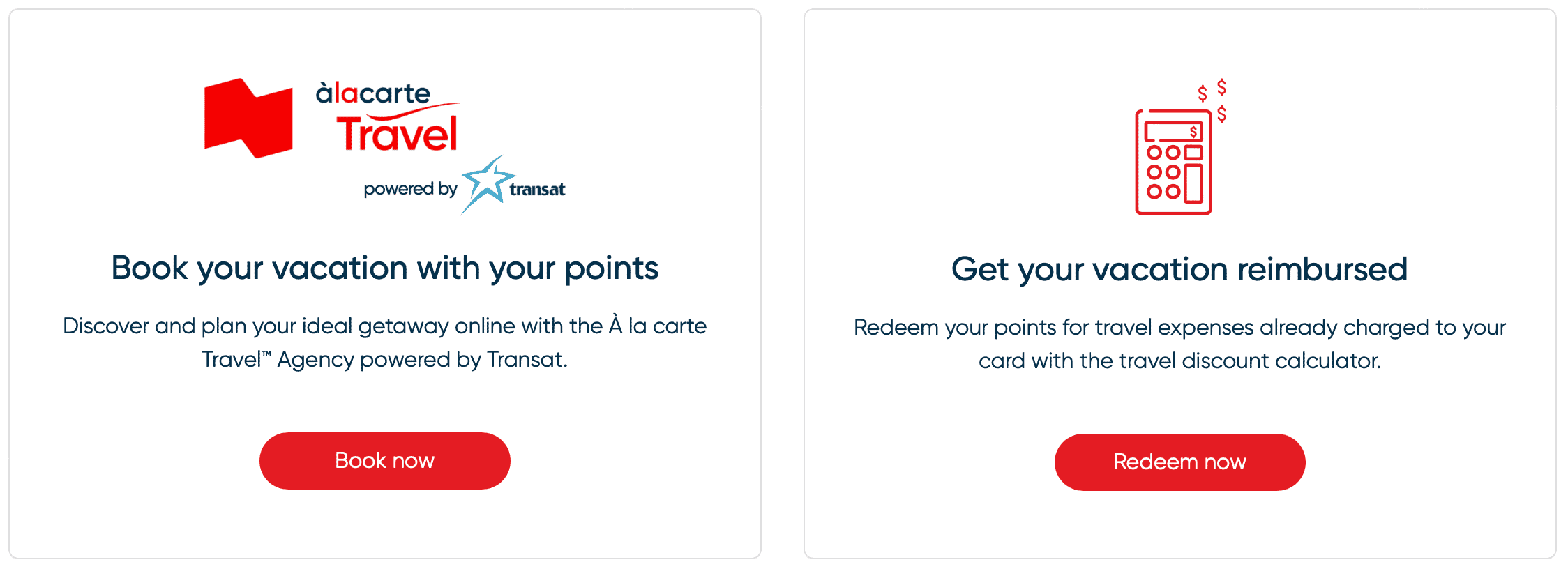 National Bank’s points, À la carte Rewards, can be redeemed through their online travel booking portal. Through this method, À la carte Rewards points have a fixed value of 1 cent per point.