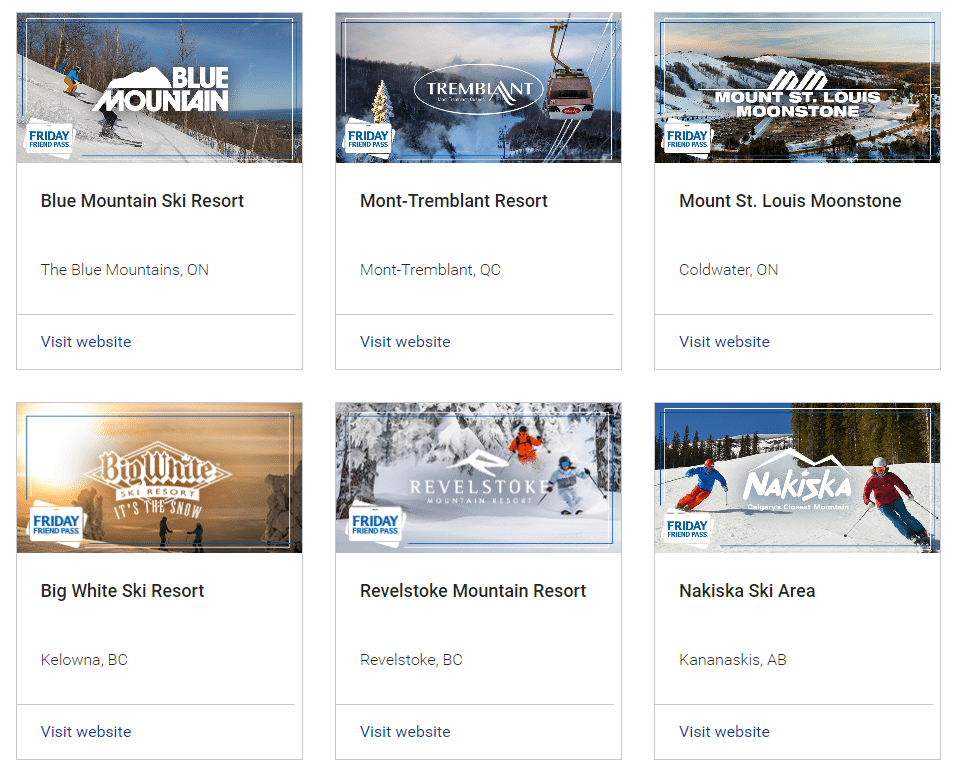 The RBC Friday Friend Pass can be accessed by using your eligible RBC Avion Visa card to pay for a lift ticket at one of the 13 eligible resorts through each individual resort’s dedicated booking portal.