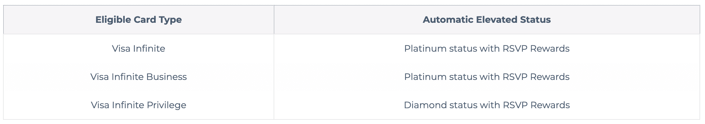 (If you happen to already have an RSVP Rewards account, you’ll need to call in to get your status bumped based on your eligible Visa card.)