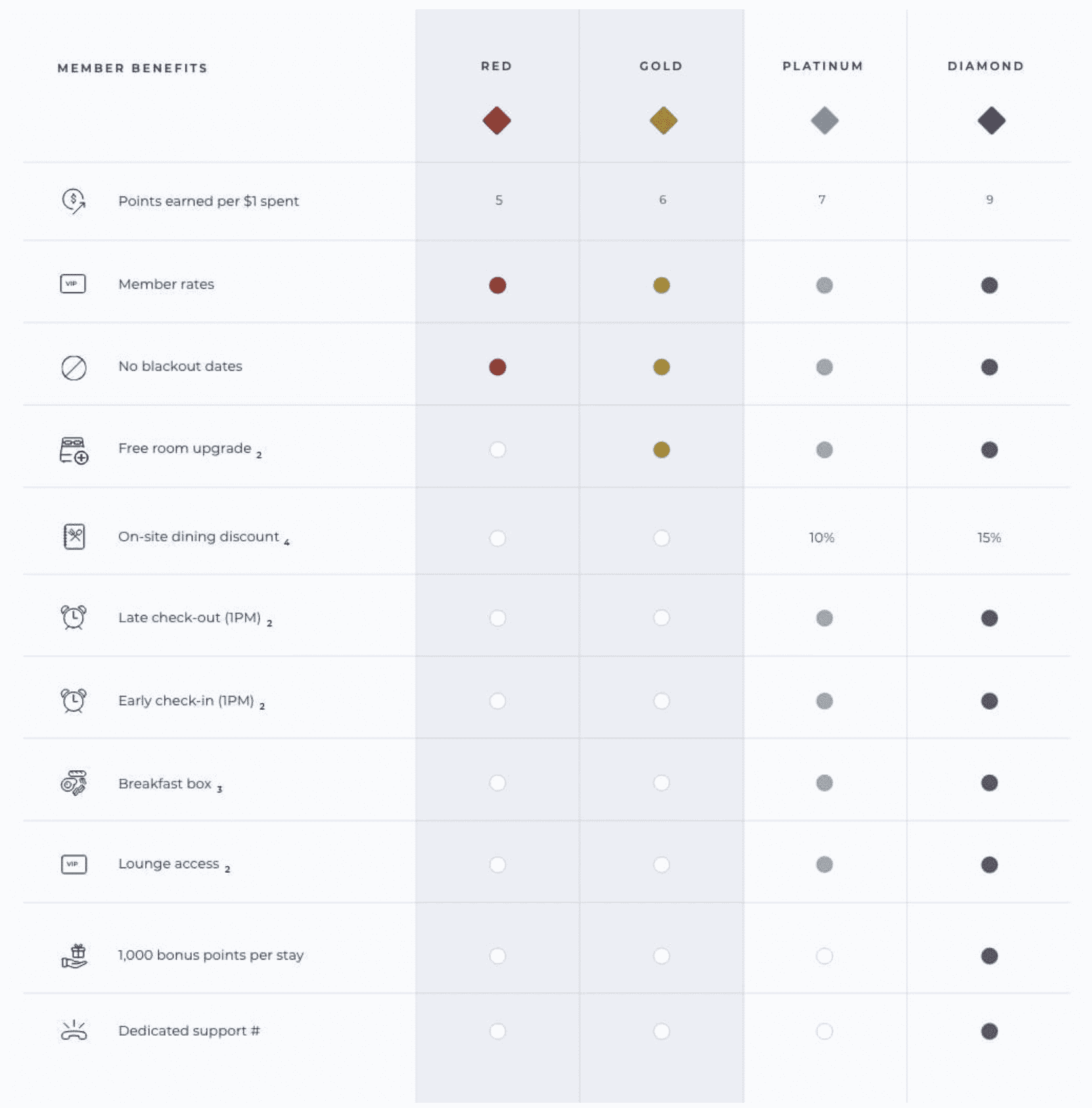 The most useful benefits appear to be the free room upgrade, breakfast box, and lounge access; however, all are subject to availability at the hotel. If a hotel doesn’t offer a breakfast box, then Platinum members will receive a $5 gift card, while Diamond members will receive a $10 gift card.