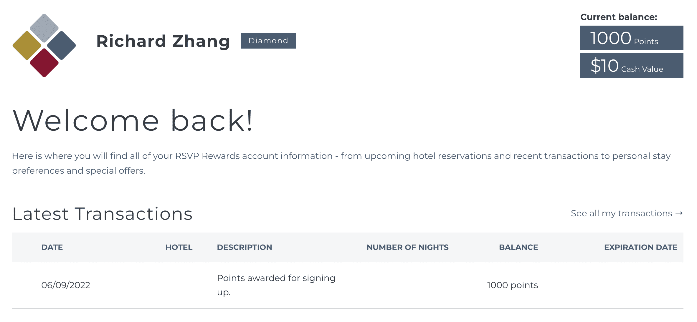 Upon completing your registration, you’ll automatically be enrolled in the corresponding status, along with a “welcome bonus” of 1,000 RSVP Rewards points (worth $10 towards a Sandman stay) to boot.