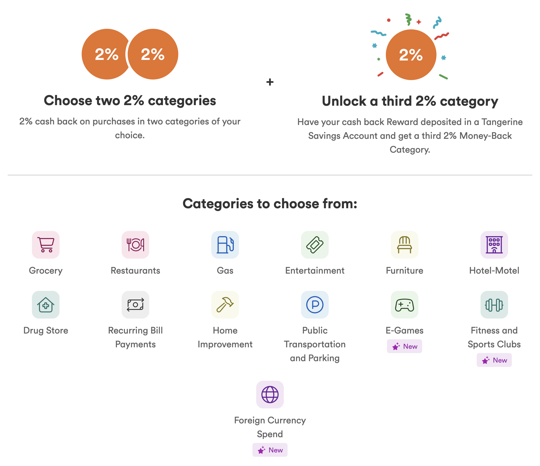 Cardholders who only hold the credit card get to choose two categories, while those who have a Tangerine Savings account can choose a third category.