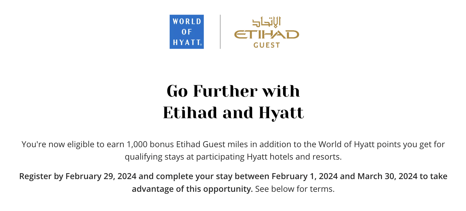 World of Hyatt and Etihad Guest are offering Hyatt members the opportunity to earn 1,000 Etihad miles per hotel stay this winter with a new promotion.