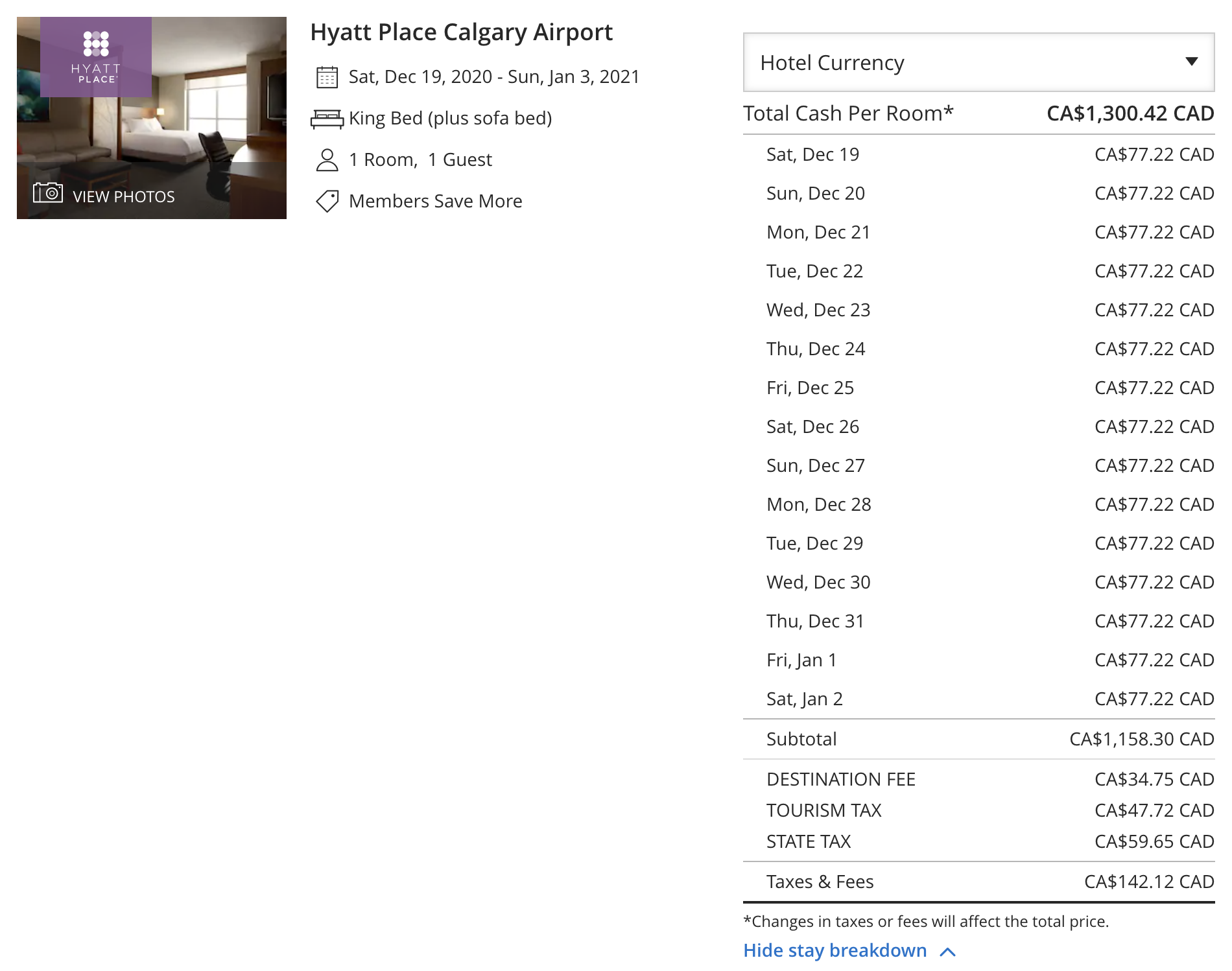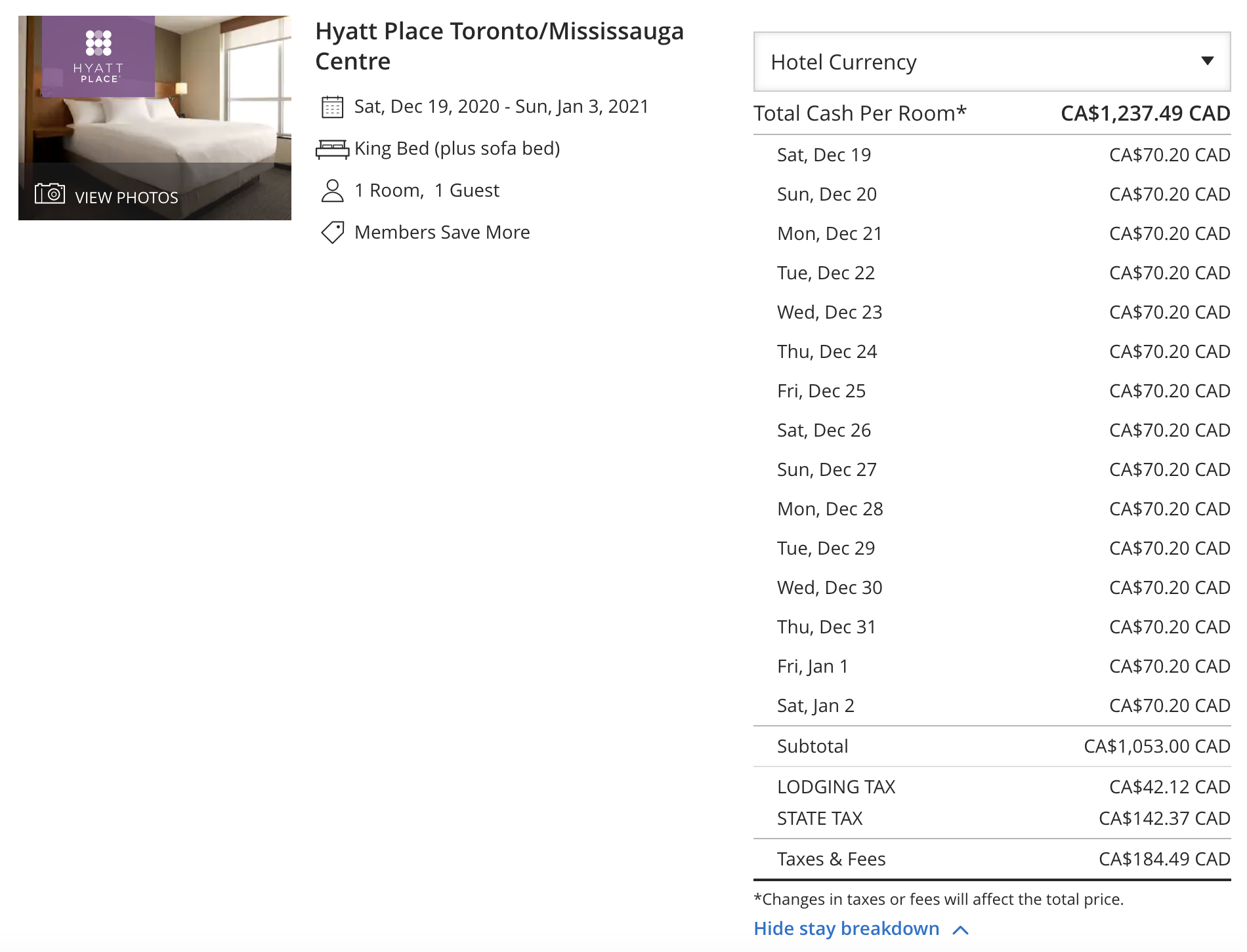 Since we need to actually check-in to a hotel stay in order for the stay to be valid, and most of us are probably house-bound here in Canada for the next little while, the objective is to find the cheapest Hyatt property in Canada and book 15 nights there.