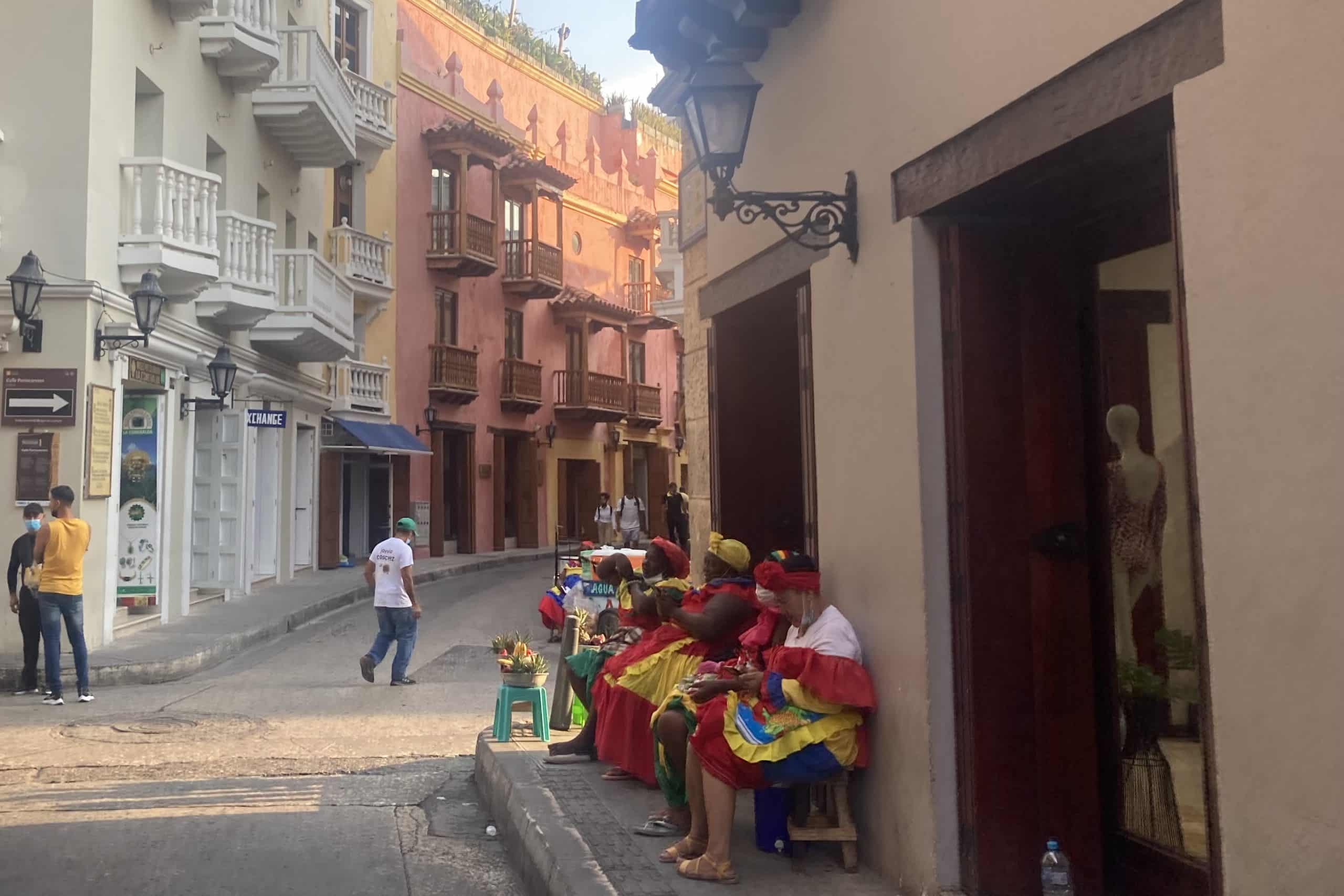 Palenque women in traditional dress can be found around Cartagena, going about their daily life and gladly posing for tourist photos.