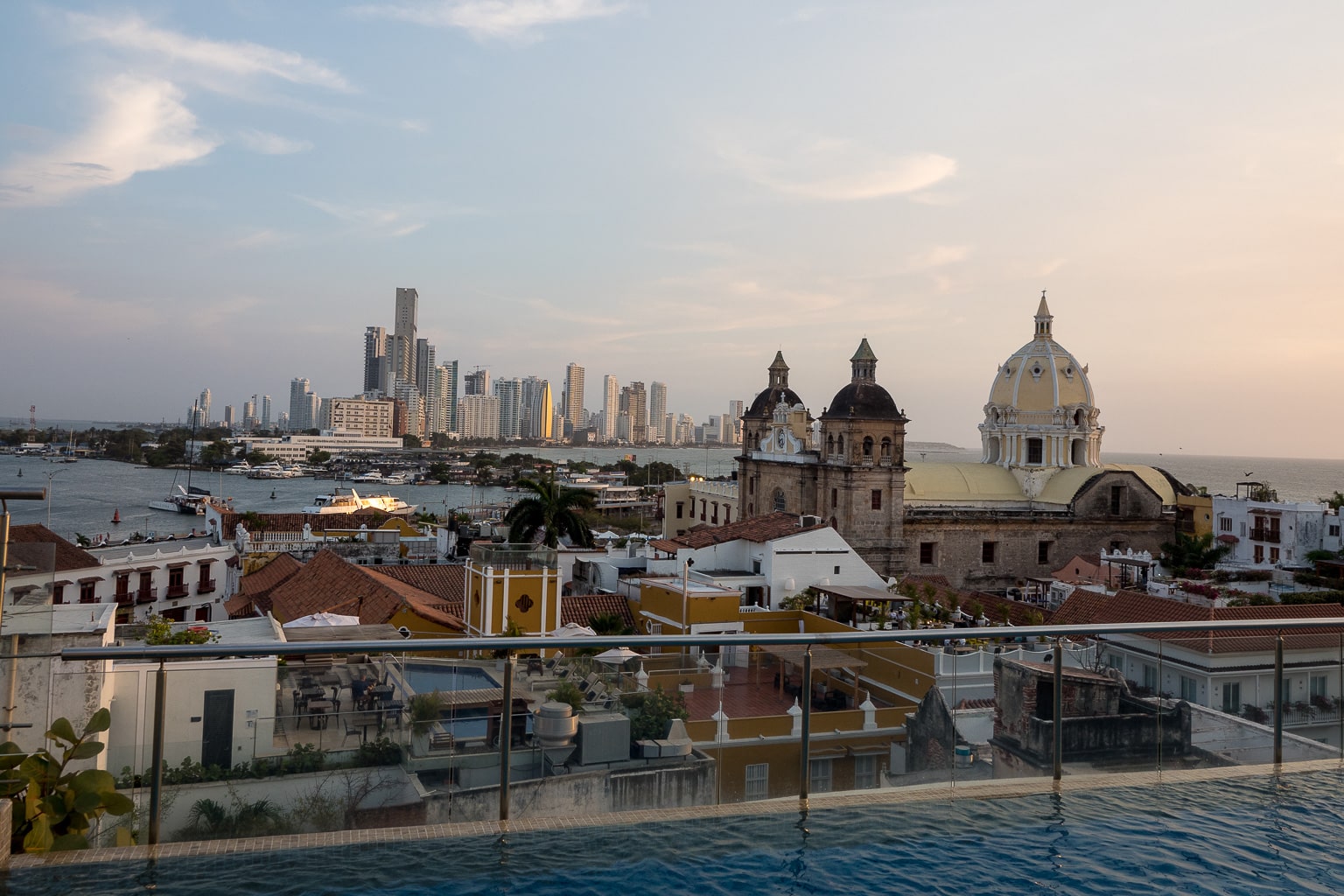 The bar at Hotel Movich is particularly popular. It’s rightfully known as the best rooftop view in Cartagena, peeking above the other buildings. Its panoramic vista spans colonial cathedrals nearby, and the modern Bocagrande skyline in the distance.