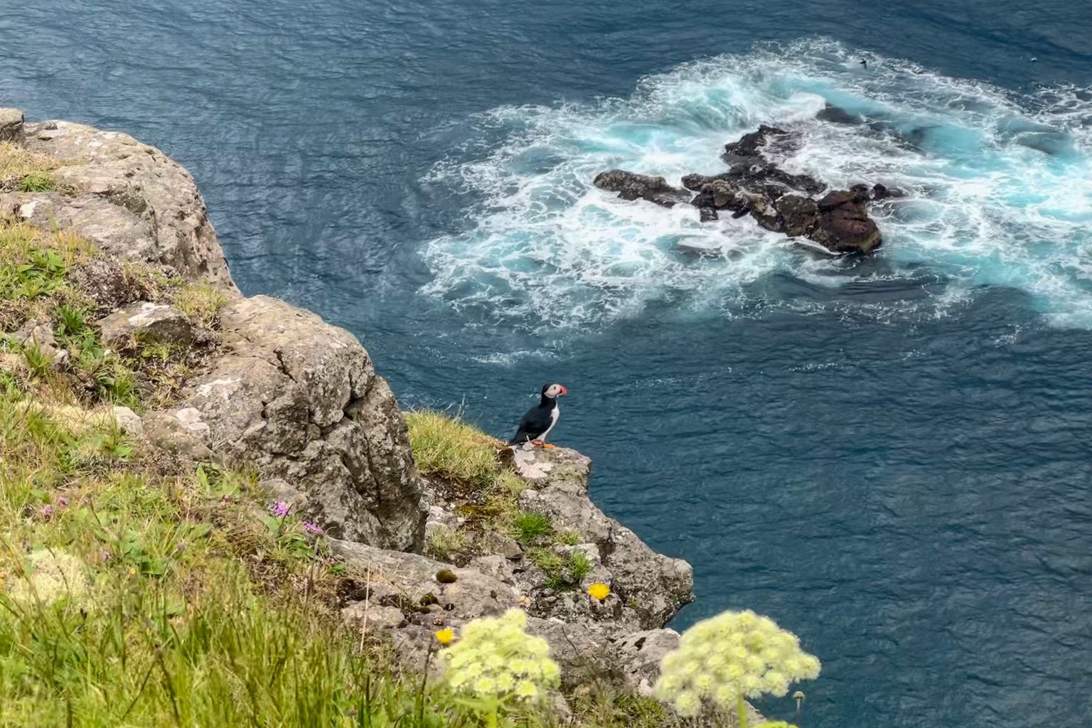 You’ll be able to spot them all over the islands, whether they’re just swimming in a pack off the coast of Skúvoy or occupying their nesting holes on the cliff side of Múlafossur.