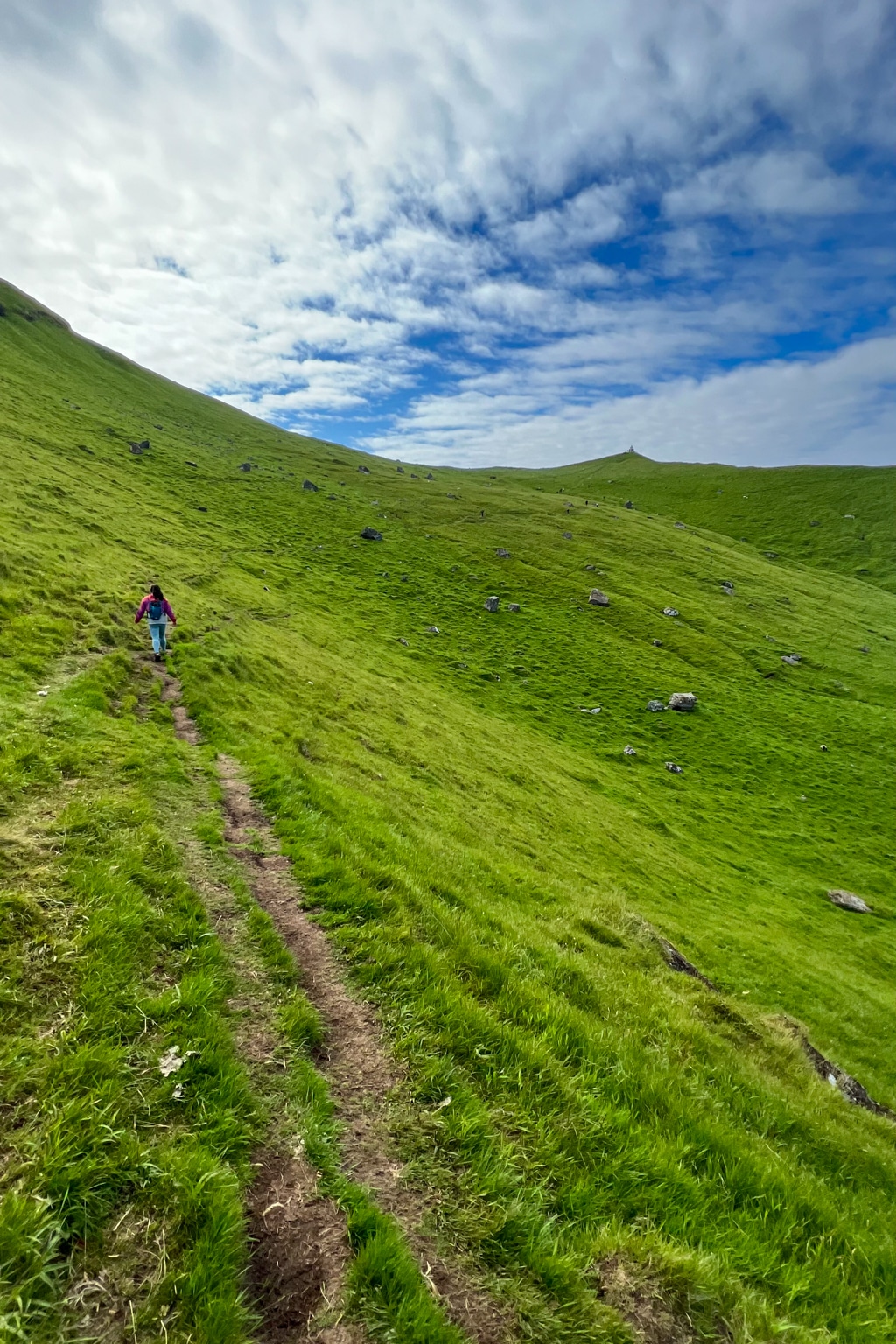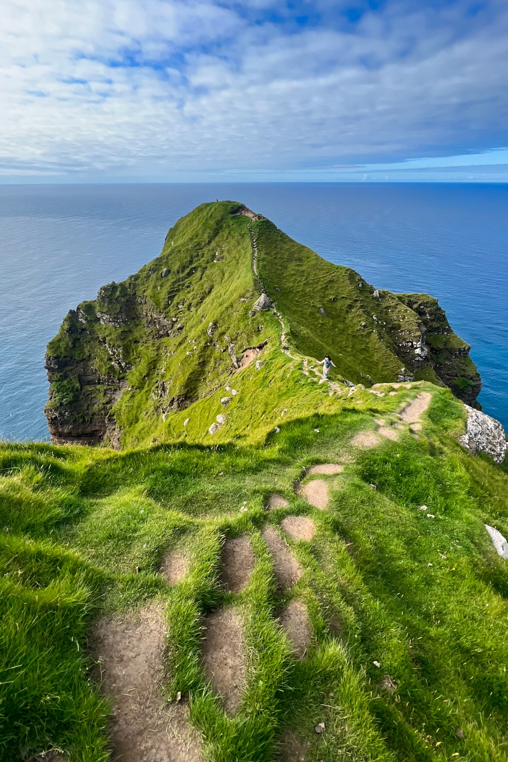 From the lighthouse, you can hike down and then head up to an outcrop at the very northern tip of Kalsoy. Looking back across this thin island, seeing bodies of water on either side, is simply a sight to behold.