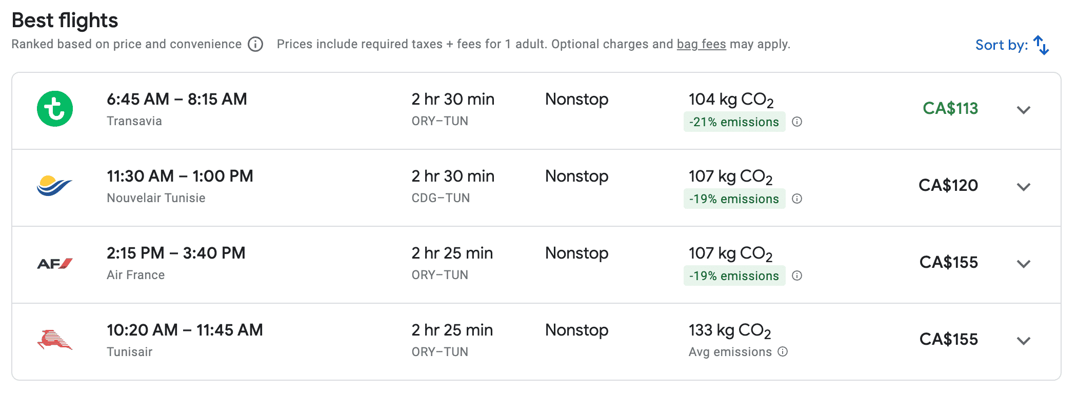 Air France operates quite a few daily flights, although they charge quite a premium compared to Tunisair, Novelair Tunisie, and Transavia.