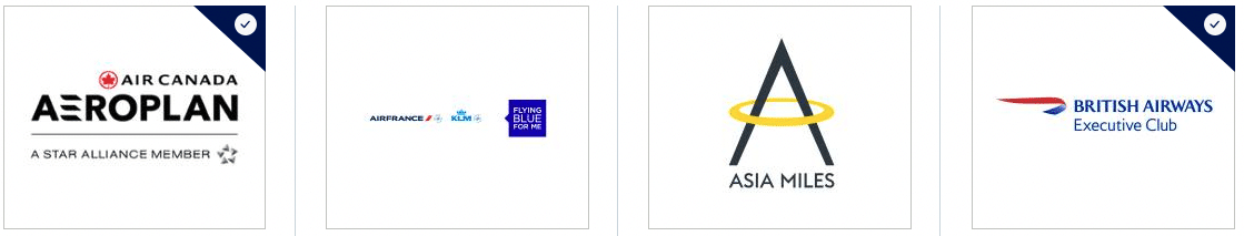This single points currency gives you access to airline loyalty programs in the three global alliances (Aeroplan/Star Alliance, The British Airways Club/oneworld, and Air France KLM Flying Blue (SkyTeam)), as well as three other airline programs (Cathay Pacific Asia Miles, Delta SkyMiles, Etihad Guest) and two hotel programs (Marriott Bonvoy and Hilton Honors).