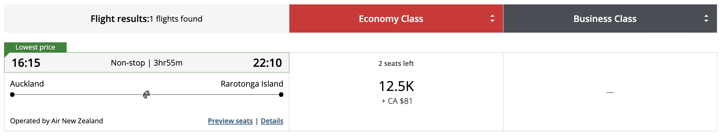 If you really struggle to find Island Hopper awards through Aeroplan, you can also try United MileagePlus, which naturally will have better availability, since it’s a United Airlines flight.
