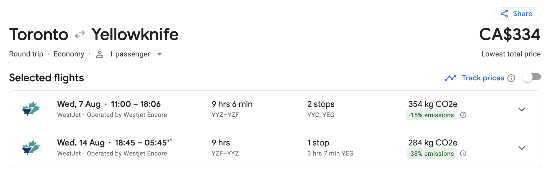 Since WestJet Dollars can be redeemed against your airfare at par with the Canadian dollar, it’s in your best interest to find the most affordable flights. To do this, you can use Google Flights to set up fare alerts, and you can also sign up for emails from WestJet to give you a heads up on when there’s a sale.