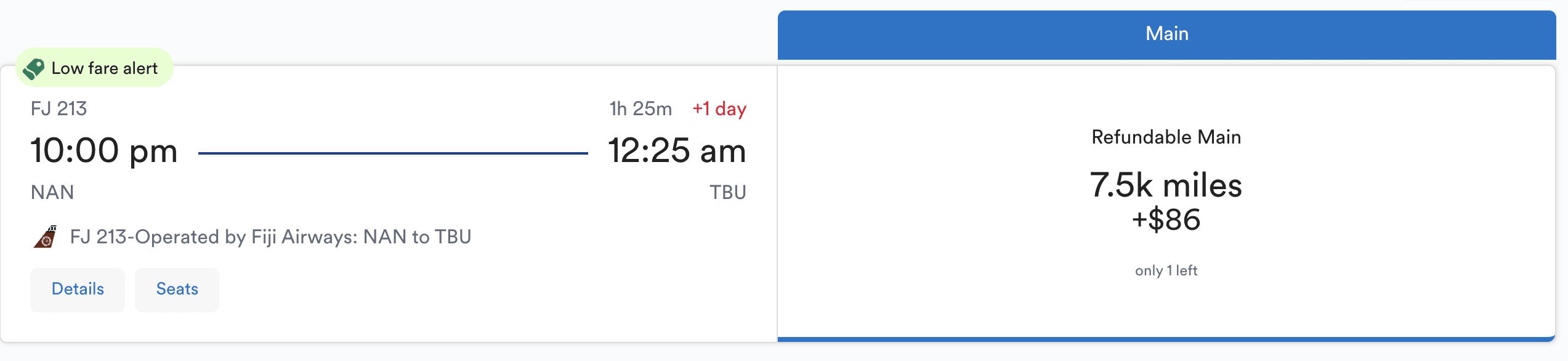 For example, with Alaska Mileage Plan, you can book a flight between Nadi (NAN) in Fiji and Nuku’alofa (TBU) in Tonga for 7,500 Alaska miles.