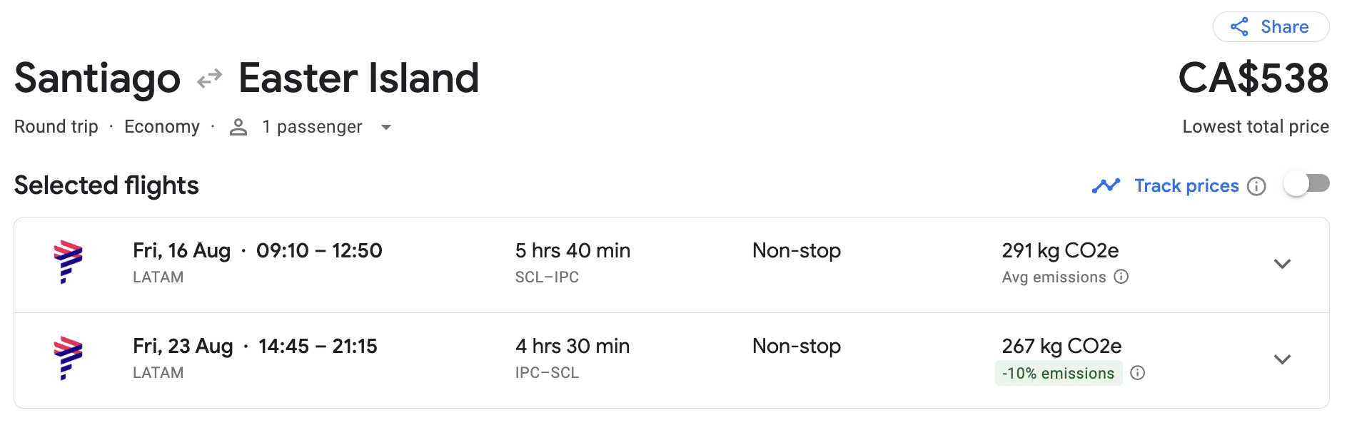 Operated solely by LATAM from Santiago de Chile (SCL), flights to Easter Island (IPC) are capacity controlled, and tourists must pay full economy or business class fares when paying in cash.
