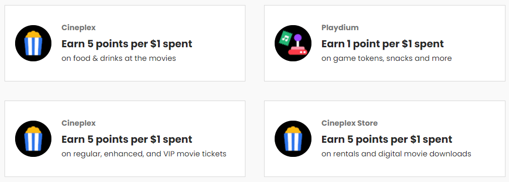 By using your Scene+ membership alone, you’ll earn 5 points per dollar spent on tickets, food, and drinks; however, when you use your Scotiabank Gold American Express® Card to pay, you’ll get another 5 points per dollar spent on the same purchases, doubling your earnings to 10 points per dollar spent, or once again, a 10% return.