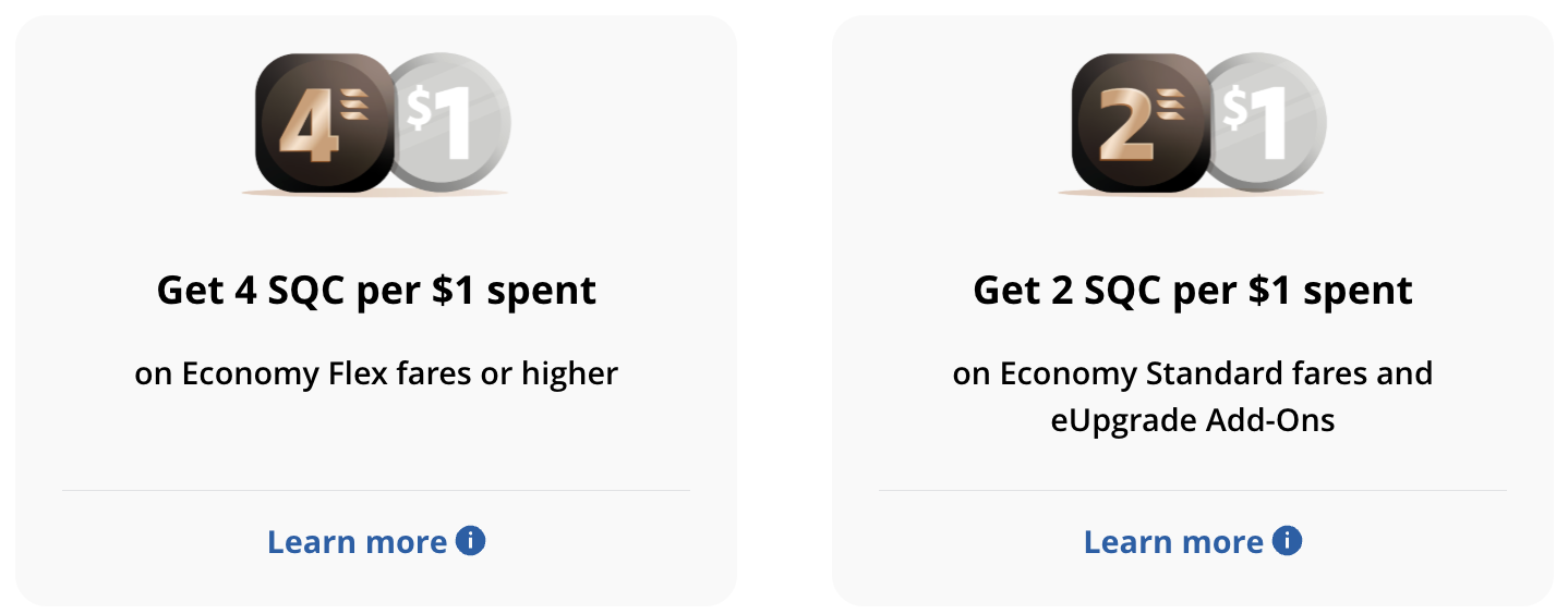 - You’ll get 4 SQC per dollar spent on Economy (Flex) fares and above