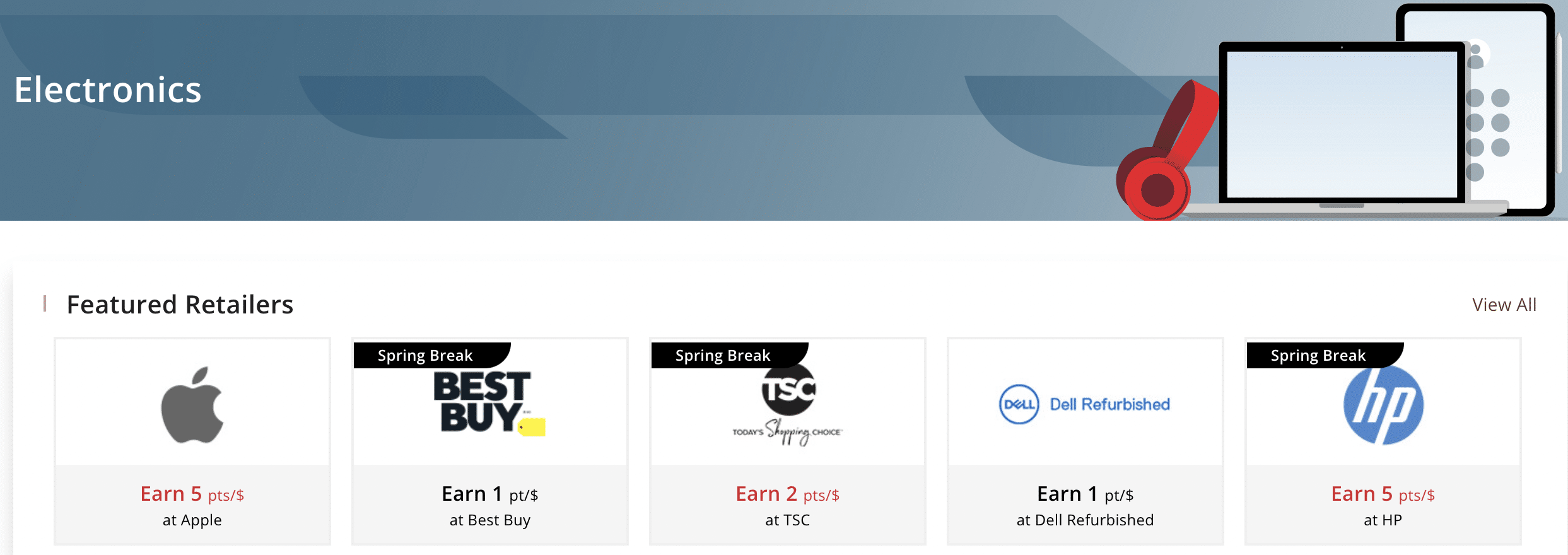 During these events, which are clearly displayed on the eStore landing page, you’ll typically see base earning rates from 5–10 points per dollar spent at select stores. If you’ve had your eye on a big purchase, it may be in your best interest to hold out for one of these promotions.