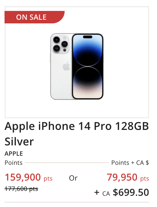 For example, you could purchase an iPhone for 159,900 Aeroplan points during a sale.