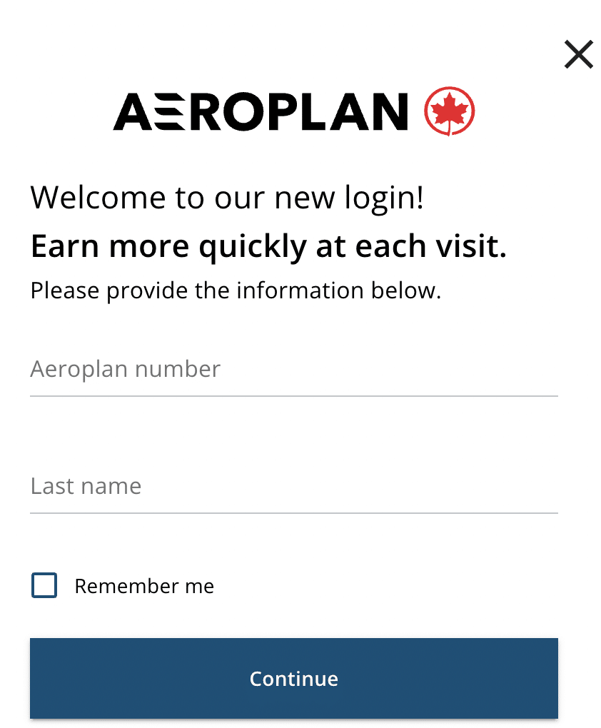 You’ll then be asked to provide your Aeroplan number and last name, and the window will lead you to your chosen storefront.
