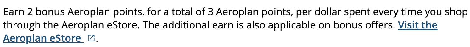 If you have an Aeroplan co-branded credit card, you’ll earn extra points for every dollar you spend at the eStore. The number of points you earn depends on the base earning rate on your card.
