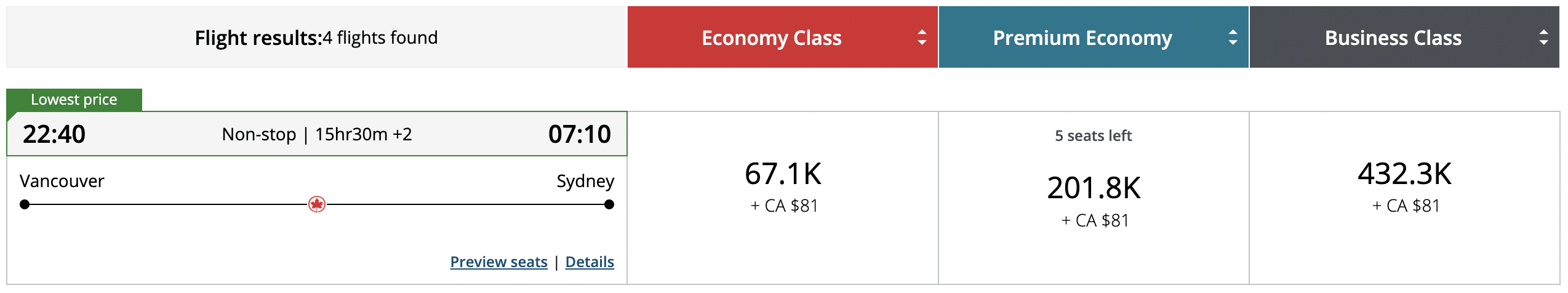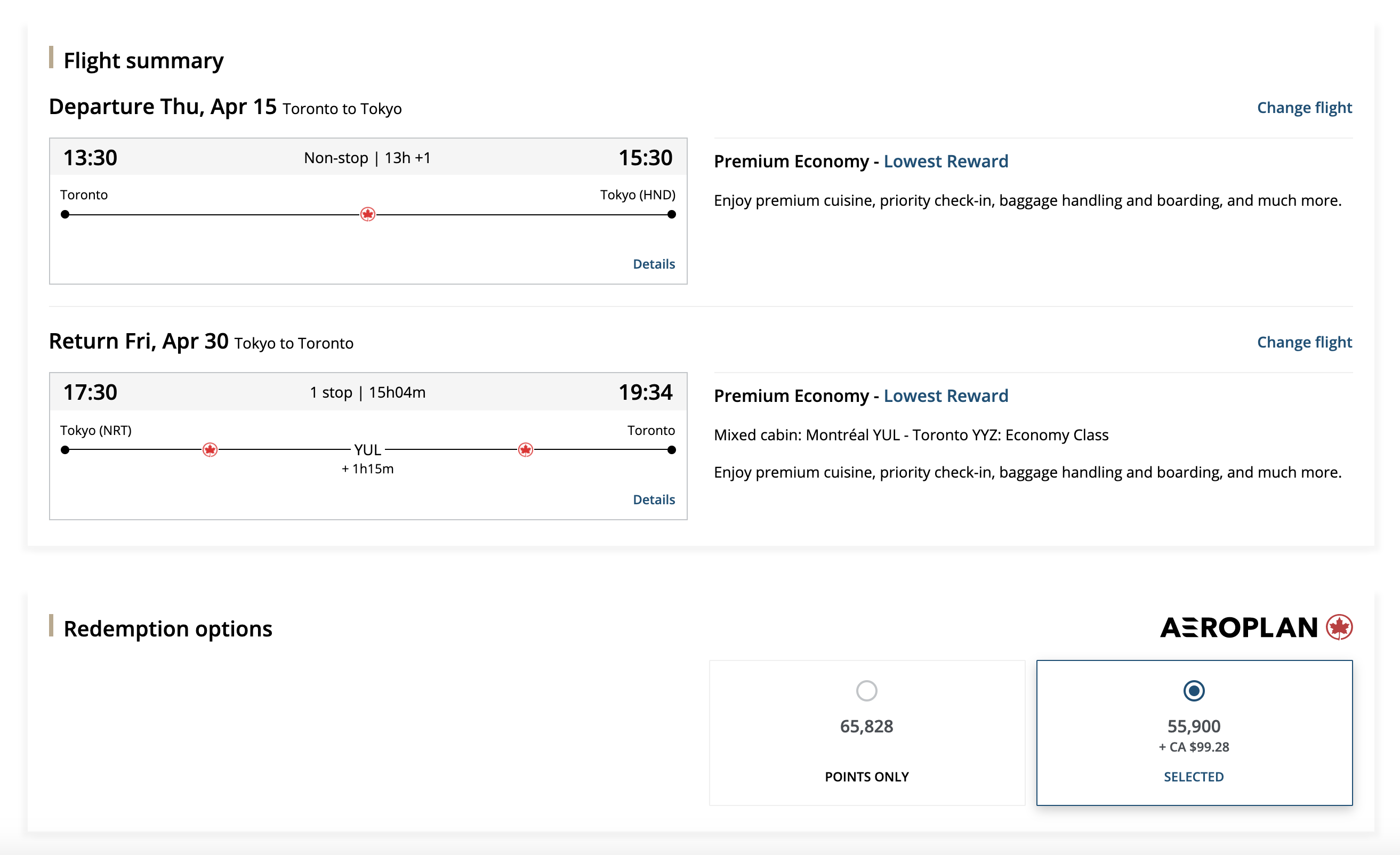 Applying a Priority Reward voucher to this redemption as a Super Elite member, you’d theoretically be able to book this whole trip for only 95,000 Aeroplan points – that’s a spectacular deal!