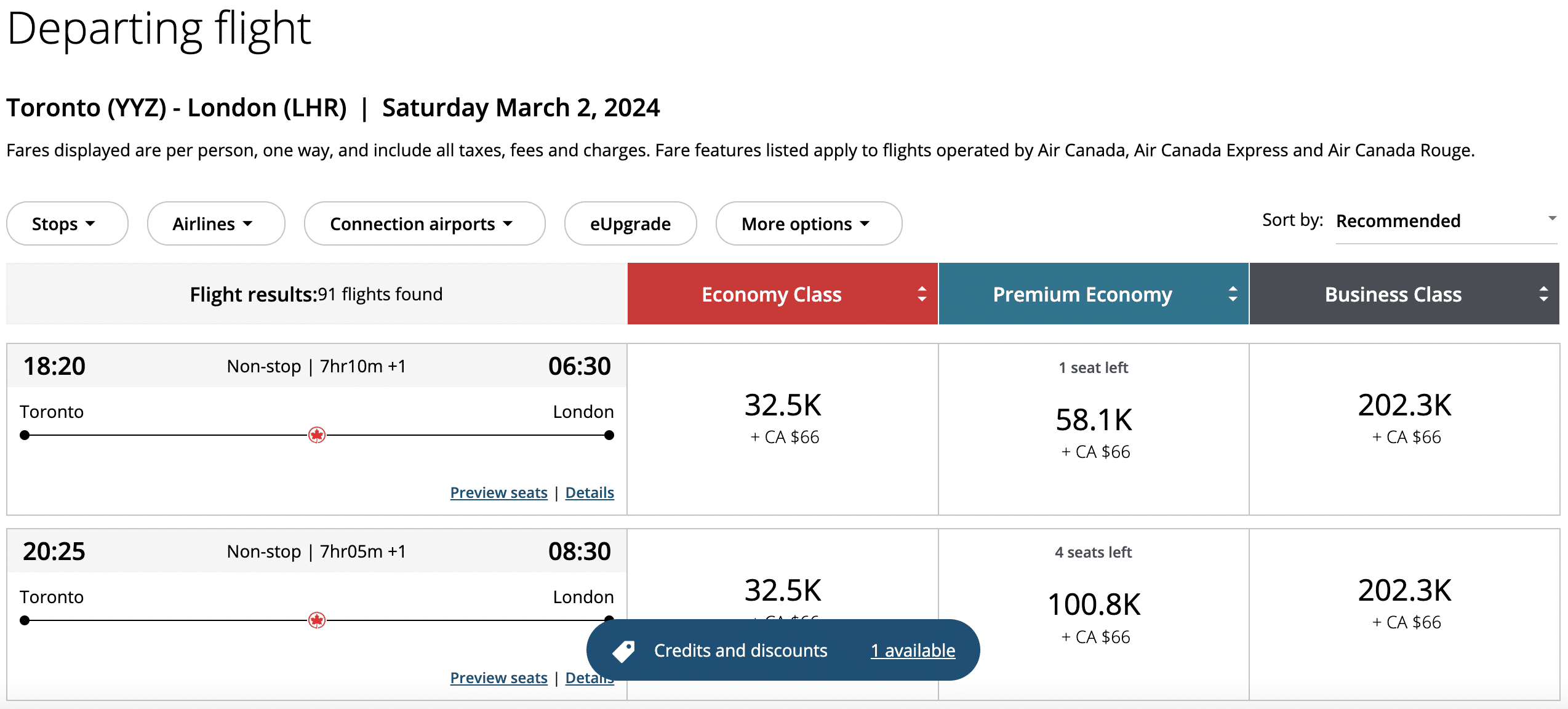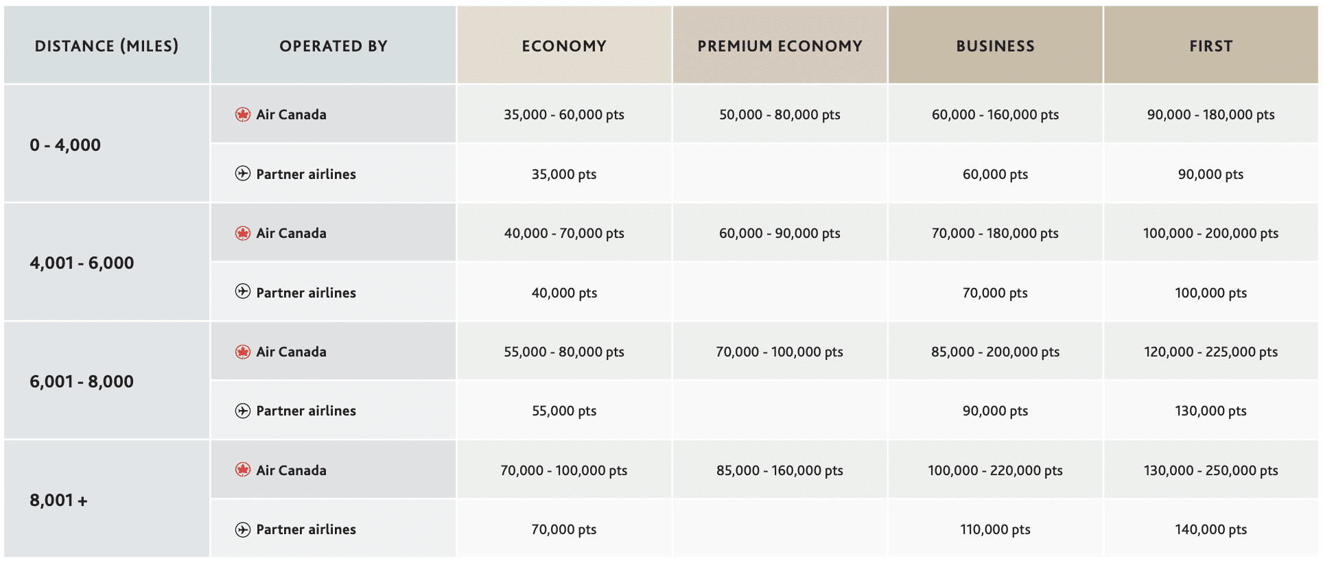 Another consideration is whether or not you fly with Air Canada or partner airlines.