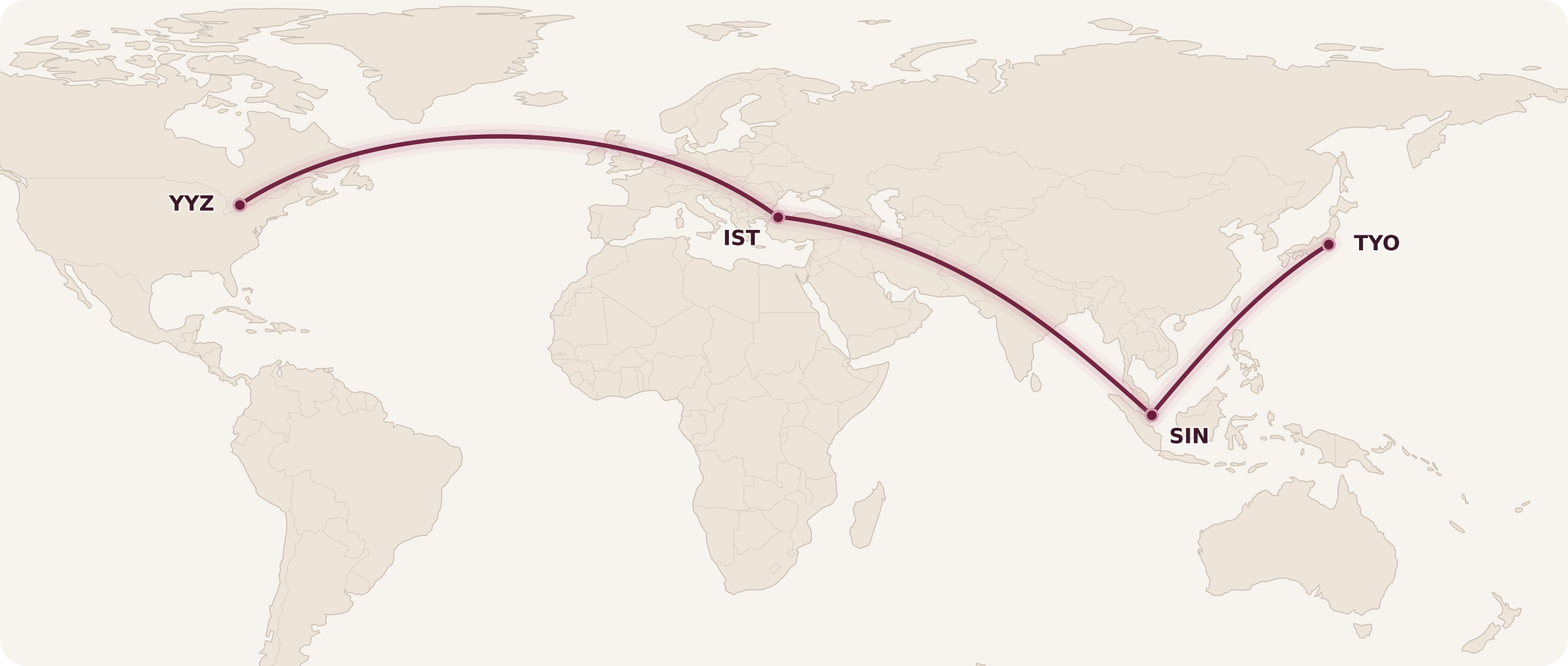 For example, a round-trip flight from Toronto to South East Asia, with a stopover in Europe and another one in East Asia, typically costs 190,000 Aeroplan points, assuming you’ve booked with partner airlines or scored flights at the lower end of the dynamic range for Air Canada.