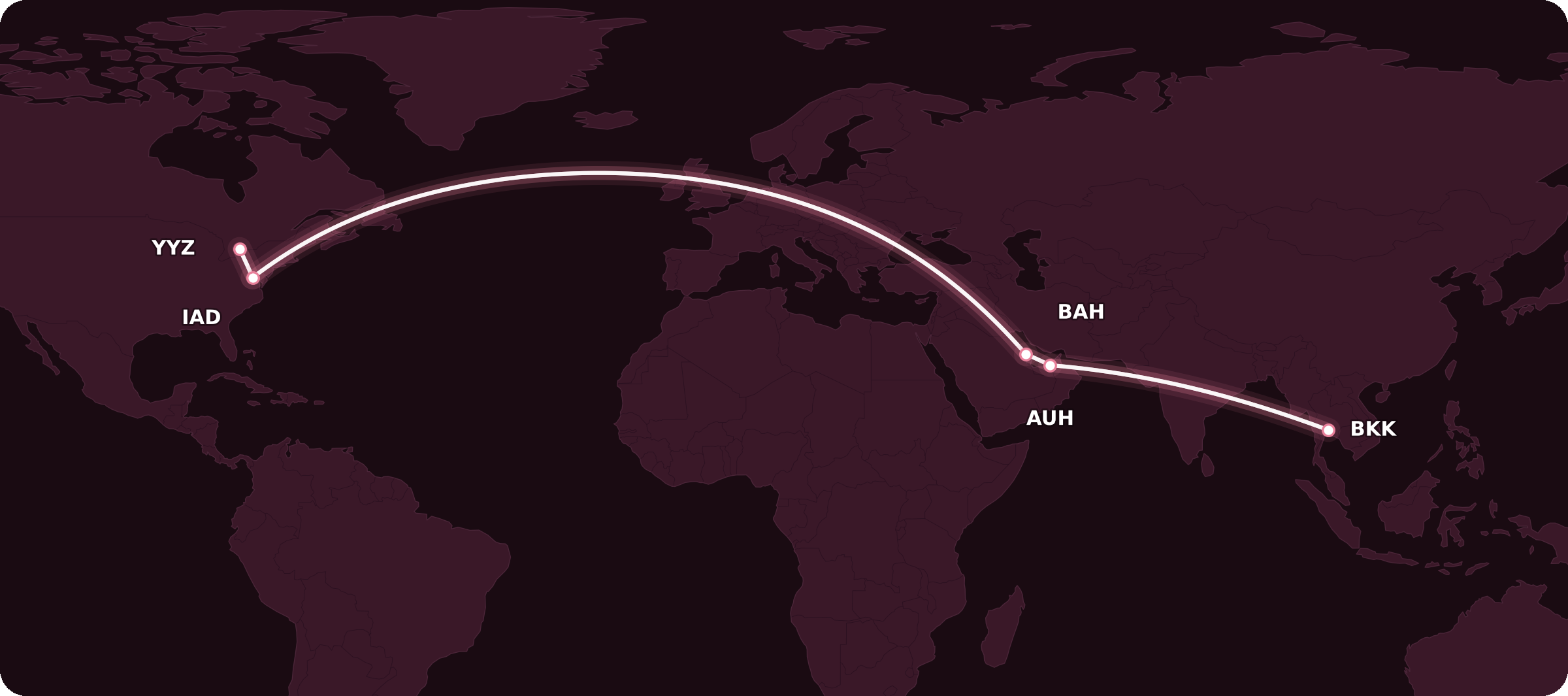 For example, let’s say you want to fly from Toronto to Bangkok via Washington, Abu Dhabi, and Bahrain on a combination of Air Canada, Etihad Airways, and Gulf Air.