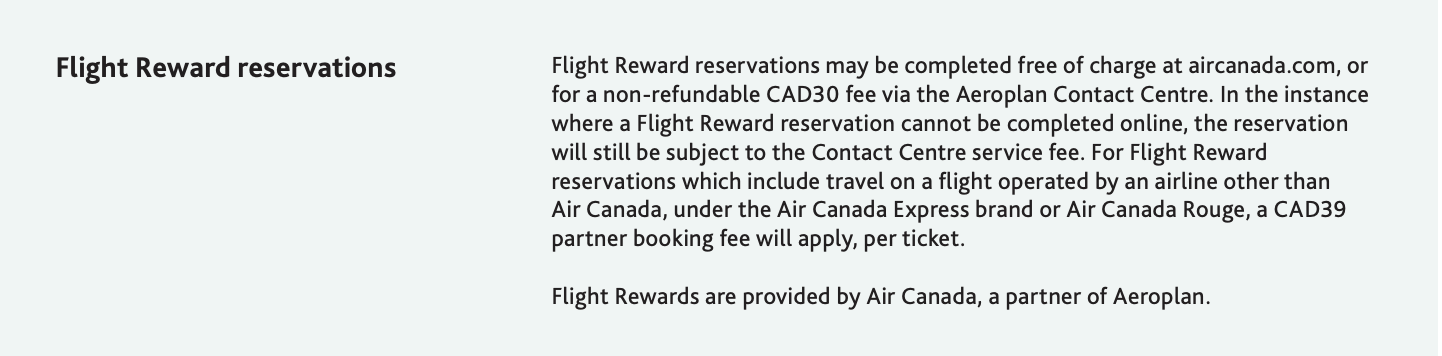 In the instance where a Flight Reward reservation cannot be completed online, the reservation will still be subject to the Contact Centre service fee.