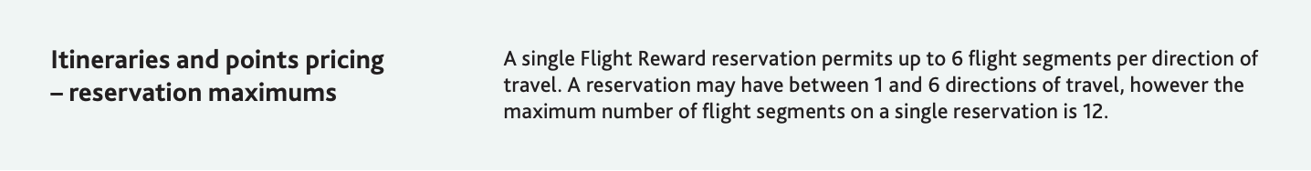 Specifically, a single reservation is permitted up to six “one-way bounds” (formally known as “directions of travel”), although is limited to 12 flight segments overall.