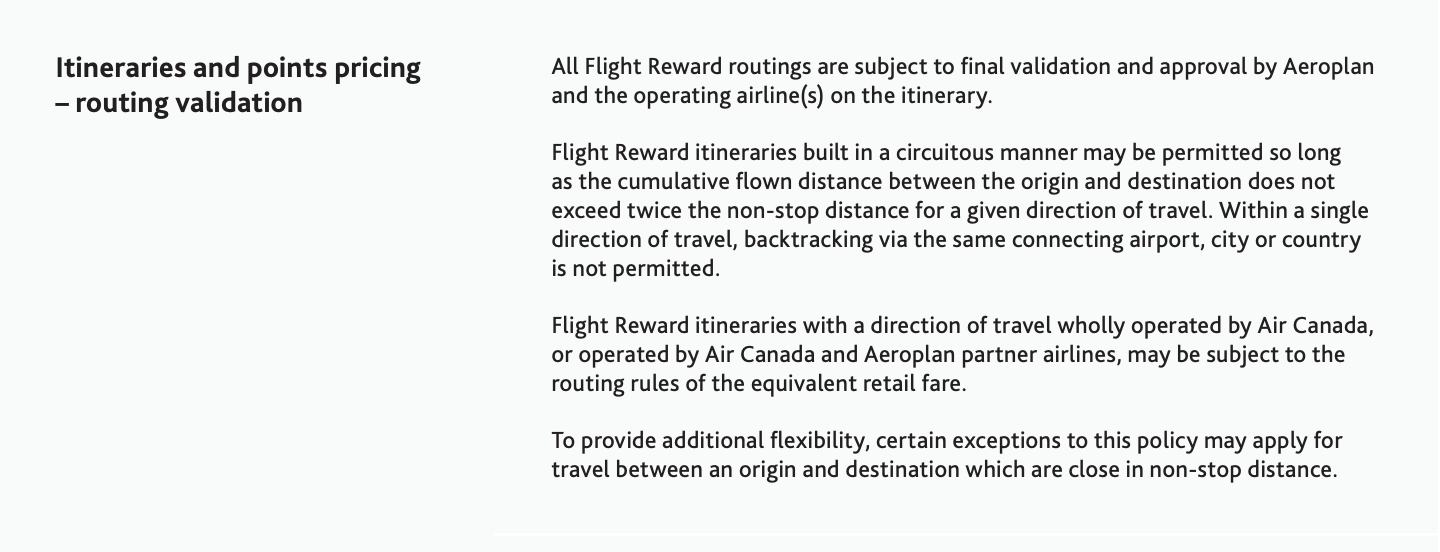 Flight Reward itineraries with a direction of travel wholly operated by Air Canada, or operated by Air Canada and Aeroplan partner airlines, may be subject to the routing rules of the equivalent retail fare.