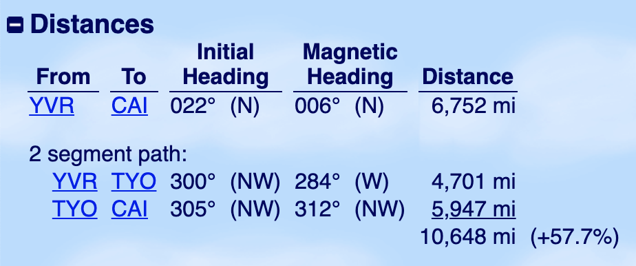 And yet, I believe this list of exceptions may be incomplete. In theory, since Africa isn’t mentioned, there’d be nothing preventing you from flying between North America and Africa via the Pacific Ocean on a routing like Vancouver–Tokyo–Cairo or Vancouver–Tokyo–Addis Ababa.