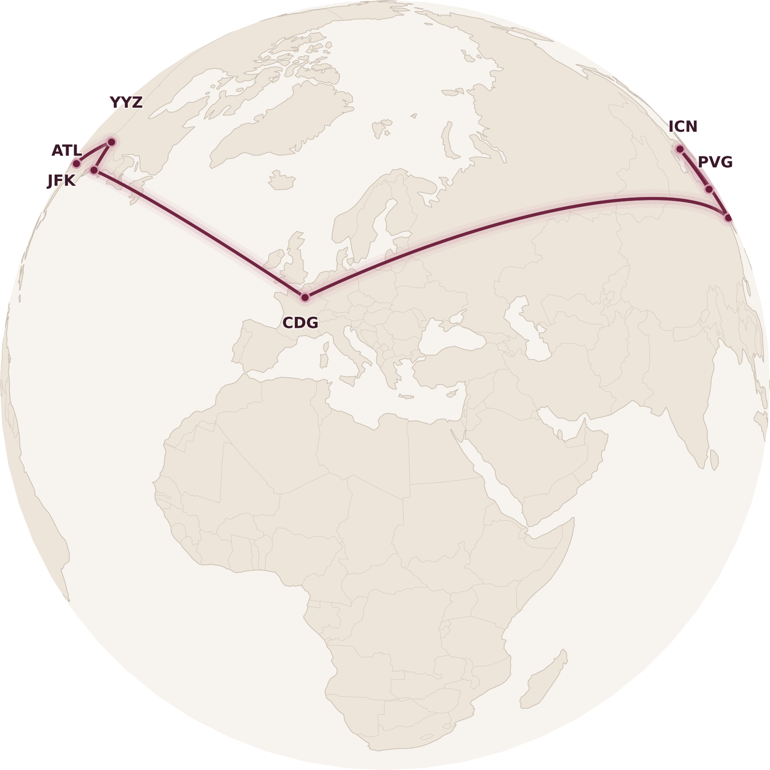 - Seoul–Abu Dhabi–Sydney, which is a valid routing within the Pacific zone (although I’m not sure how either Seoul or Sydney constitutes “ a travel zone”)