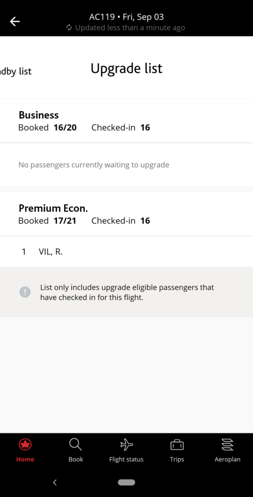 When compared with being able to instantly confirm an eUpgrade by adopting the “Latitude Attitude”, this method isn’t quite as reliable. But by paying attention to the waitlist on the Air Canada app, you can keep track of the odds for an upgrade.