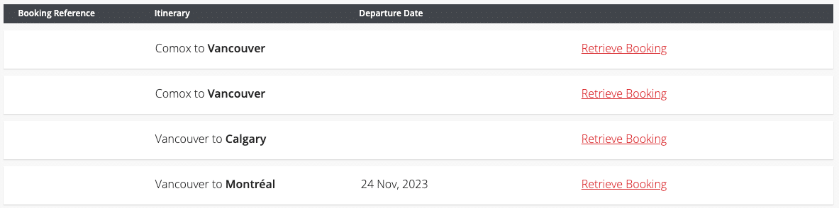 Or, you can sign-in to your Aeroplan account and navigate to the eUpgrade landing page. Locate your booking and click on “Retrieve booking.”