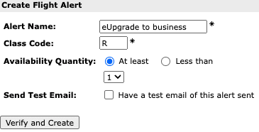 By creating a Flight Alert for “R” or “N” Class Codes, you’ll be notified if an eUpgrade seat becomes available in either class of service. This feature is particularly useful if you’d like to travel on a particular flight or date, since you’ll be the first to know if you can use eUpgrades to instantly confirm an upgrade with an eligible fare.